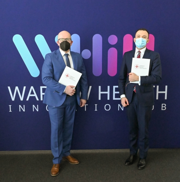 Podczas spotkania w siedzibie Agencji Badań Medycznych porozumienie o współpracy z Janssen podpisali dr hab. n. med. Radosław Sierpiński, prezes ABM oraz Tomasz Skrzypczak, dyrektor zarządzający Janssen w Polsce. Warsaw Health Innovation Hub to wspólny projekt Agencji Badań Medycznych i wiodących podmiotów z sektora medycyny, farmacji i biotechnologii, koordynowany przez Wydział Innowacji i Rozwoju Biotechnologii ABM. Tym samym, WHIH łączy współpracę sektora publicznego z biznesem w celu tworzenia innowacyjnych rozwiązań oraz zwiększenia wydajności polskiego systemu ochrony zdrowia.