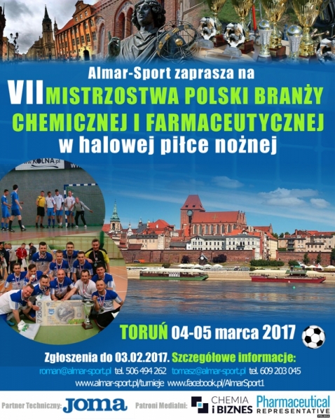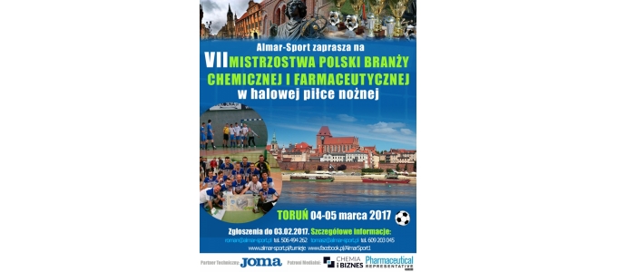 W dniach 04-05 marca 2017 r. w Toruniu odbędą się VII Mistrzostwa Polski Branży Chemicznej i Farmaceutycznej w halowej piłce nożnej.
